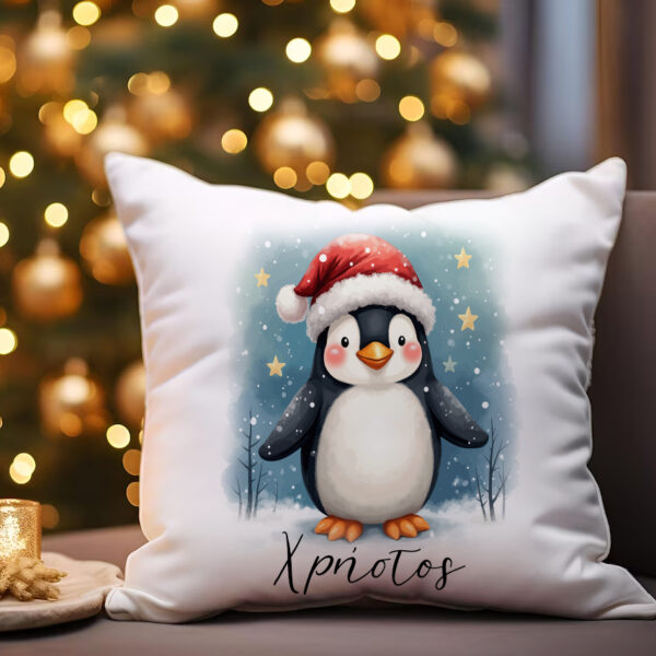 Μαξιλάρι Χριστουγεννιάτικο – Πιγκουίνος με Σκουφάκι