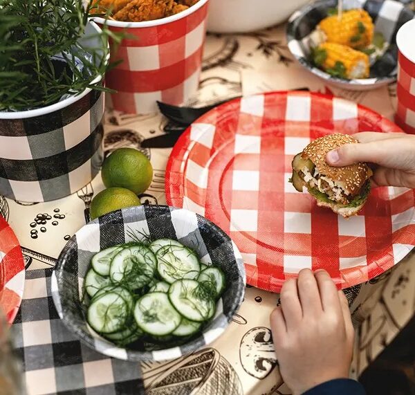 Χάρτινα Πιάτα Φαγητού – Κόκκινο Καρό (6 τεμ)