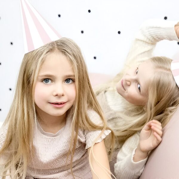 Καπελάκια πάρτυ ροζ ριγέ (6 τεμ)