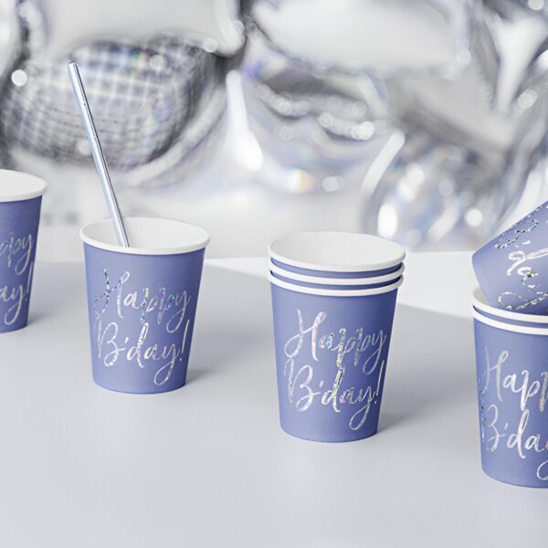 Ποτήρια πάρτυ Navy Blue – Holographic B’day (6 τεμ)