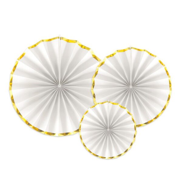Σετ χάρτινες βεντάλιες Άσπρες με χρυσό περίγραμμα (3 τεμ)