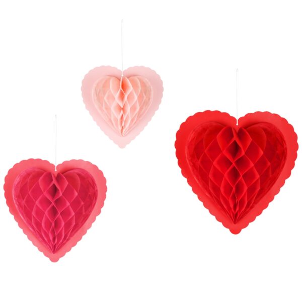 Χάρτινες Διακοσμητικές Κυψέλες Καρδιές (3 τεμ)
