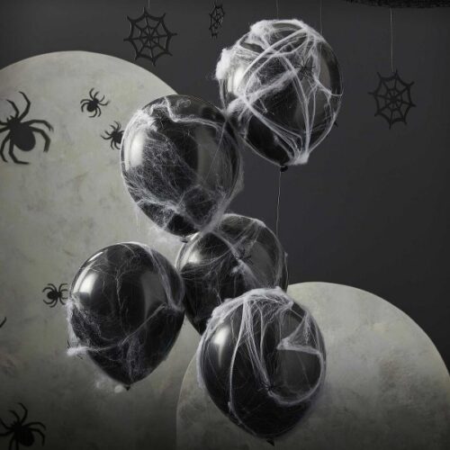 Μαύρα μπαλόνια με Αράχνες και Ιστούς (5 τεμ)