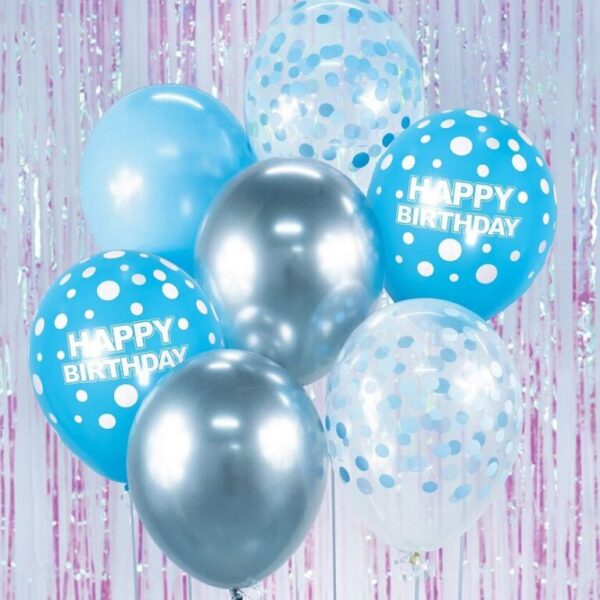 Σετ Μπαλόνια γενεθλίων Γαλάζιο & Ασημί (7 τεμ)