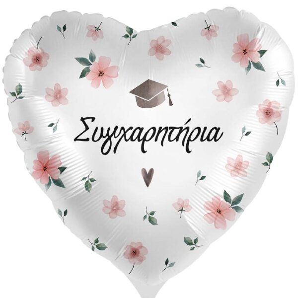 18” Μπαλόνι Φλοράλ Καρδιά “Συγχαρητήρια”