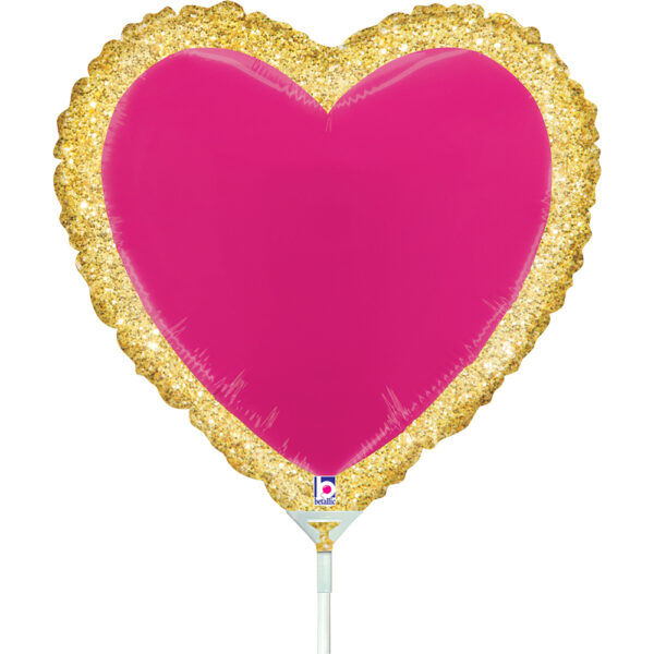 Mini Shape Μπαλόνι Φούξια Καρδιά με χρυσό περίγραμμα