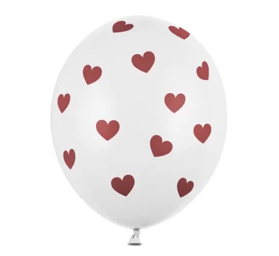 Άσπρα Μπαλόνια με κόκκινες Καρδιές (6 τεμ)