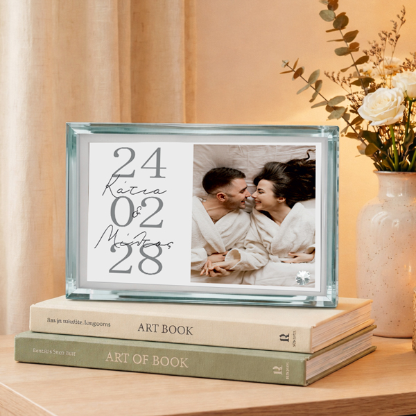 Γυάλινη κορνίζα με εφέ καθρέπτη ζευγάρι με φωτογραφία