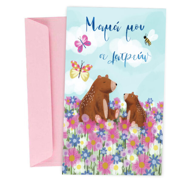 Ευχετήρια Κάρτα για μητέρα – Αρκουδάκια Φλοράλ