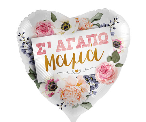 18” Μπαλόνι καρδιά Σ’αγαπώ Μαμά – Φλοράλ