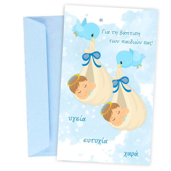 Ευχετήρια Κάρτα Βάπτισης – Δίδυμα Αγοράκια