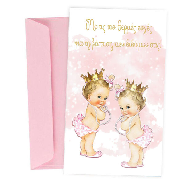 Ευχετήρια Κάρτα Βάπτισης – Δίδυμα Κοριτσάκια