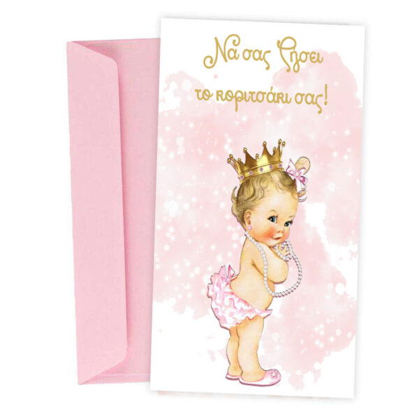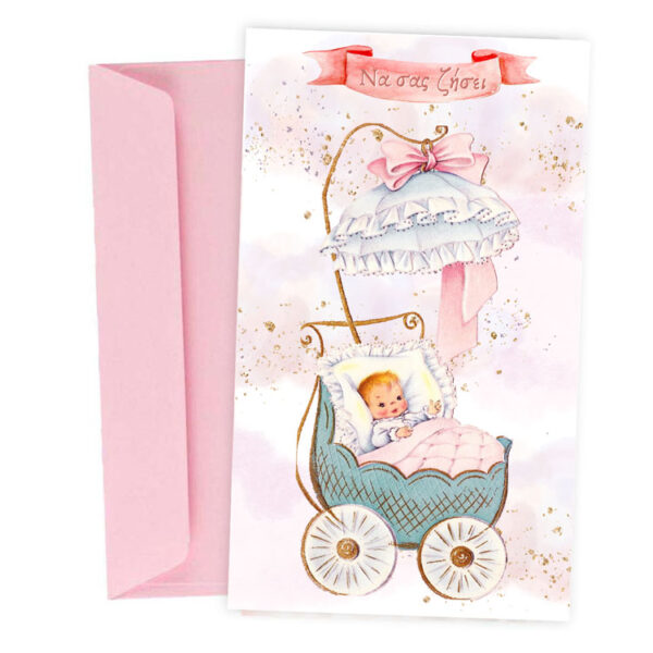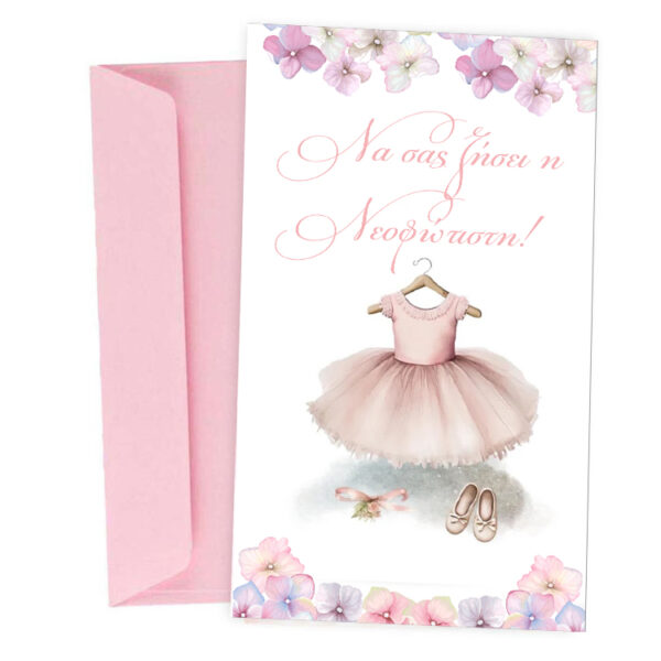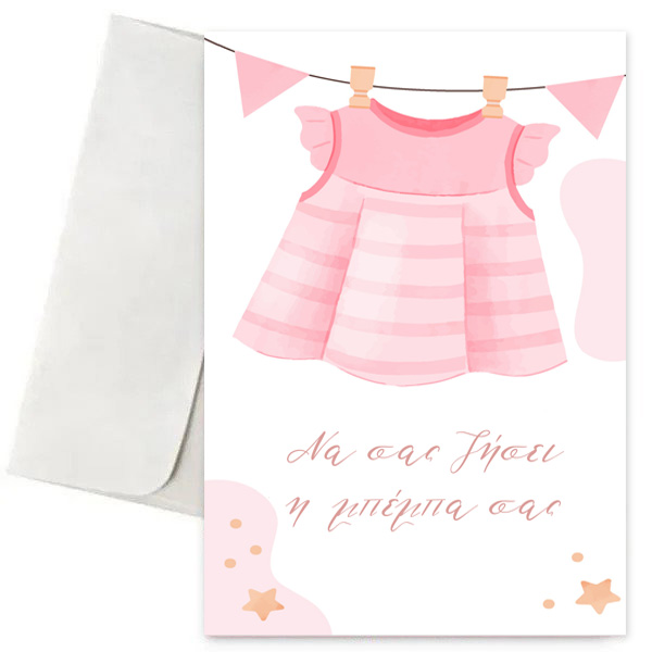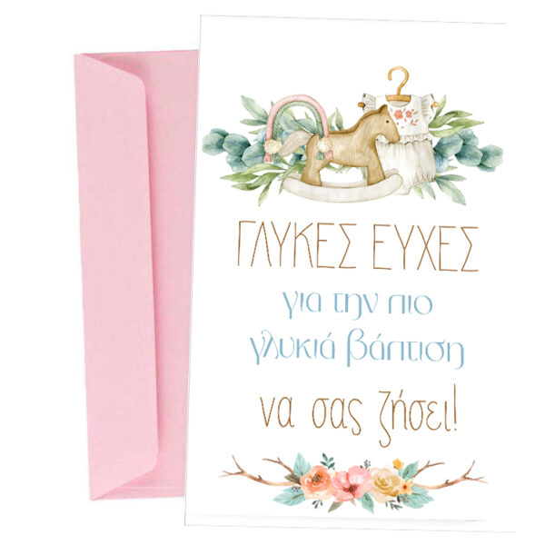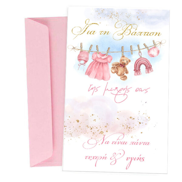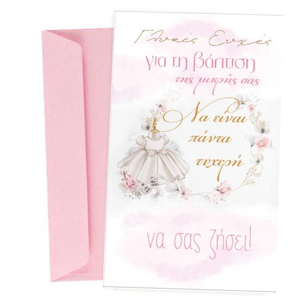 Ευχετήρια Κάρτα Βάπτισης – ροζ Μπουγάδα