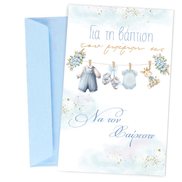 Ευχετήρια Κάρτα Βάπτισης – μπλε Μπουγάδα