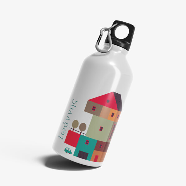 Παιδικό ανοξείδωτο Παγούρι με όνομα – Πολύχρωμο Σπίτι