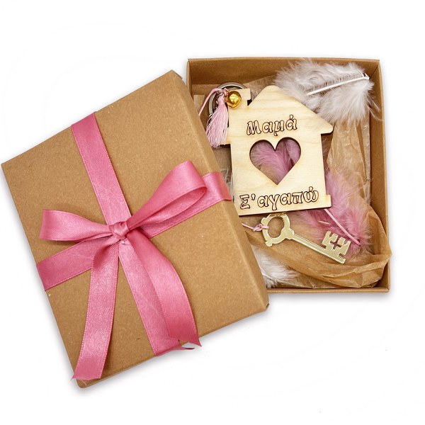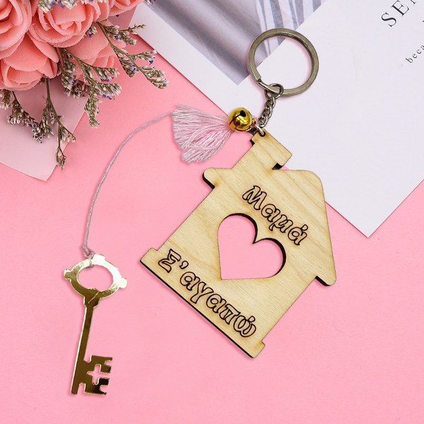 Ξύλινο Μπρελόκ Μαμά Σ ‘αγαπώ σπιτάκι
