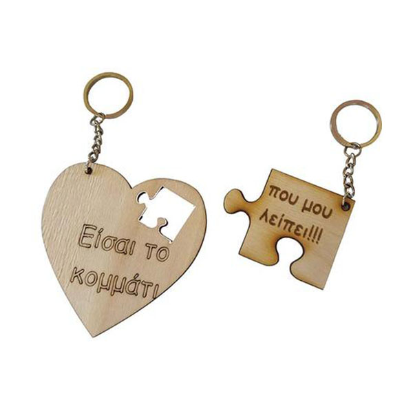 Ξύλινο μπρελόκ Καρδιά & Παζλ (2 τμχ)