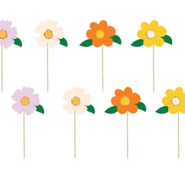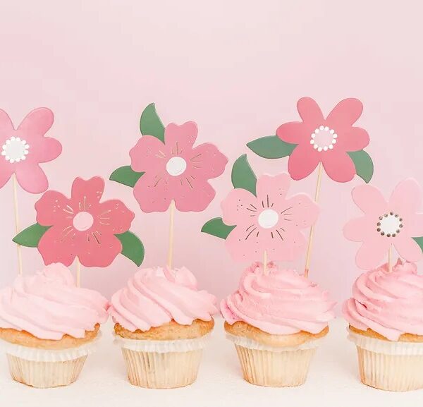 Topper Τούρτας ροζ Λουλούδια (8 τεμ)