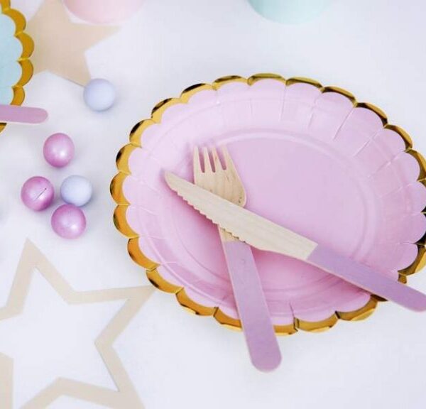 Πιάτα γλυκού Ροζ με χρυσό (6 τεμ)