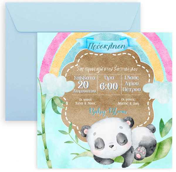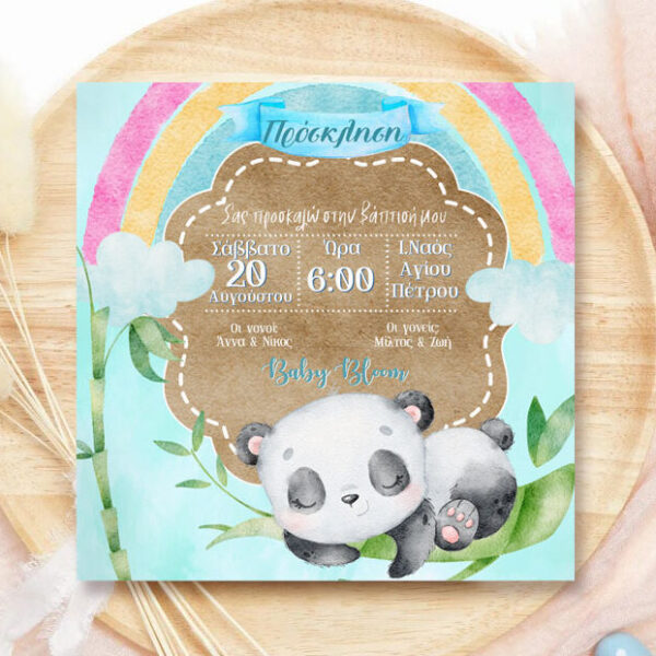 Προσκλητήριο βάπτισης Αρκουδάκι Panda Rainbow