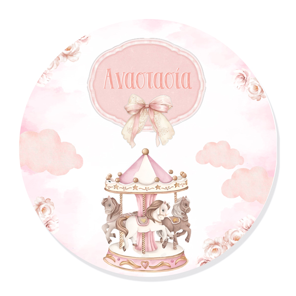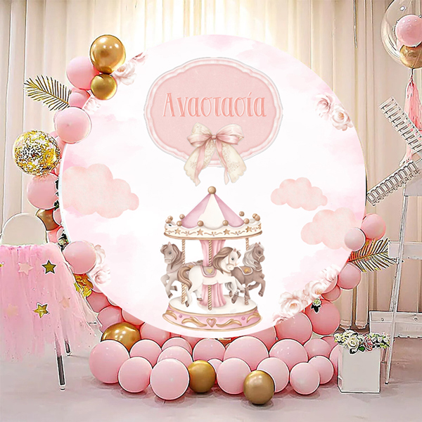 Αφίσα Βάπτισης – Ροζ Καρουζέλ Στρογγυλή 1,30m