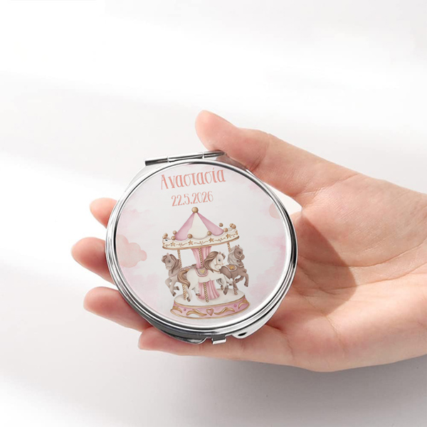 Καθρεφτάκι Ροζ Καρουζέλ Ασημί Στρογγυλό