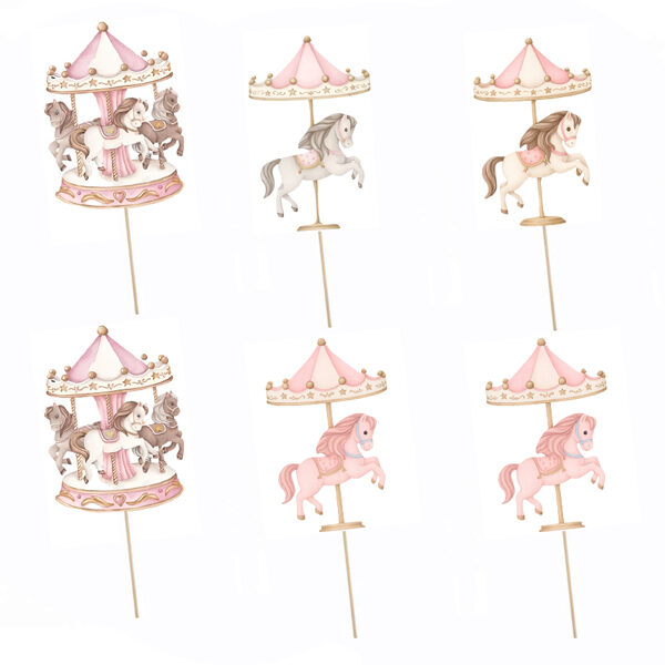 Topper Cupcake – Ροζ Καρουζέλ (6 τεμ)