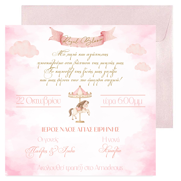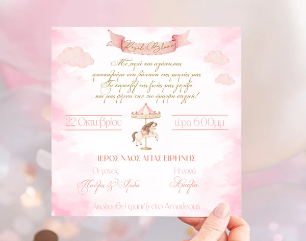 Είδη Βάπτισης, Βάπτιση με Θέμα, Βάπτιση Ροζ Καρουζέλ, Προσκλήσεις Βάπτισης - Προσκλητήρια