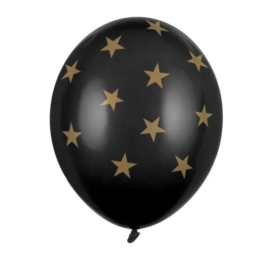 Σετ μαύρα μπαλόνια με χρυσά Αστέρια (6 τεμ)