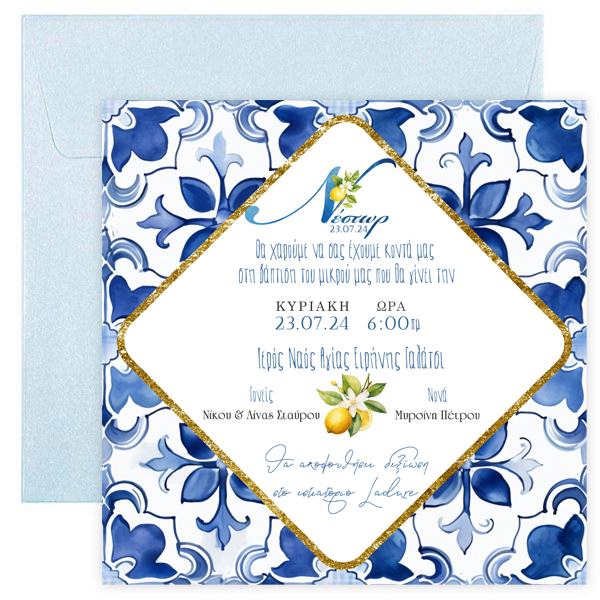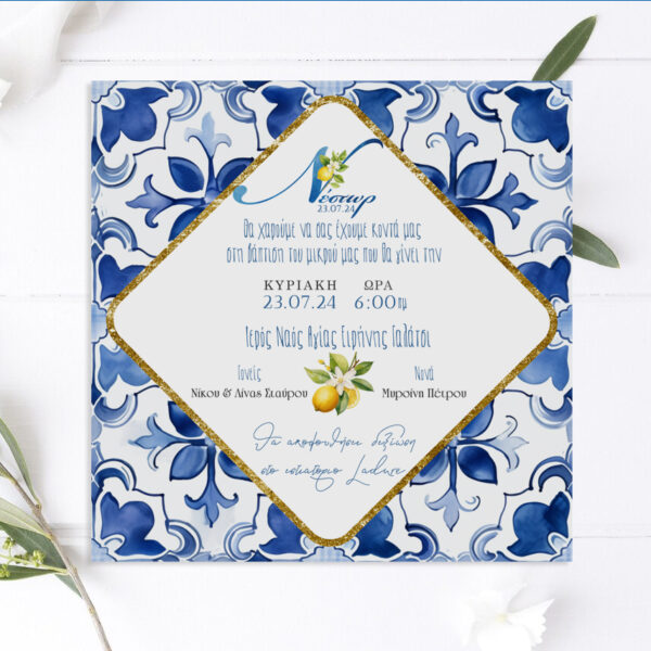 Προσκλητήριο βάπτισης – Mediterranean Λεμόνι