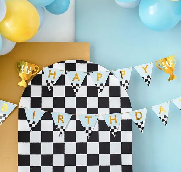 Γιρλάντα Happy Birthday Καρό με Κύπελλα 2,5m