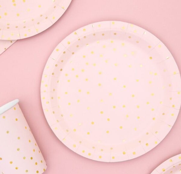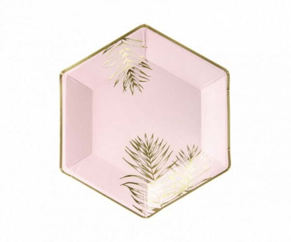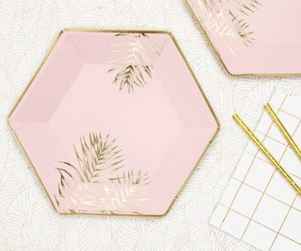 Πιάτα πάρτυ Ροζ με χρυσά Φύλλα (6 τεμ)