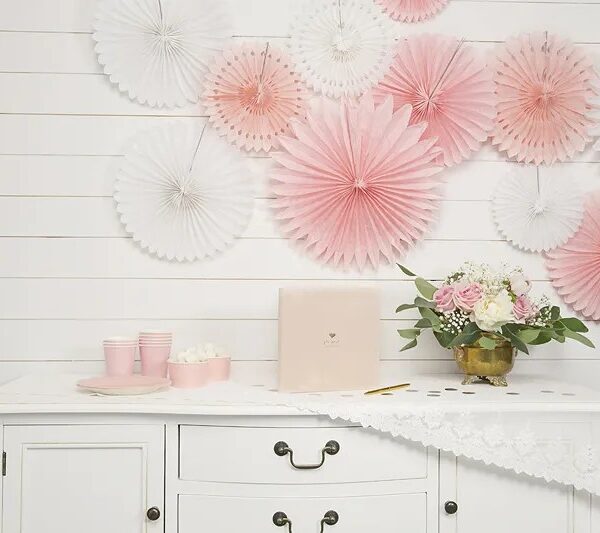 Σετ χάρτινες βεντάλιες ανοιχτό ροζ (3 τεμ)