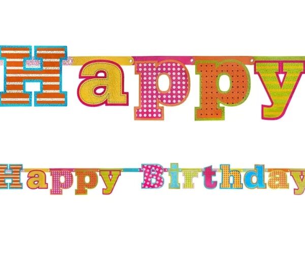 Πολύχρωμο holographic μπάνερ Happy Birthday