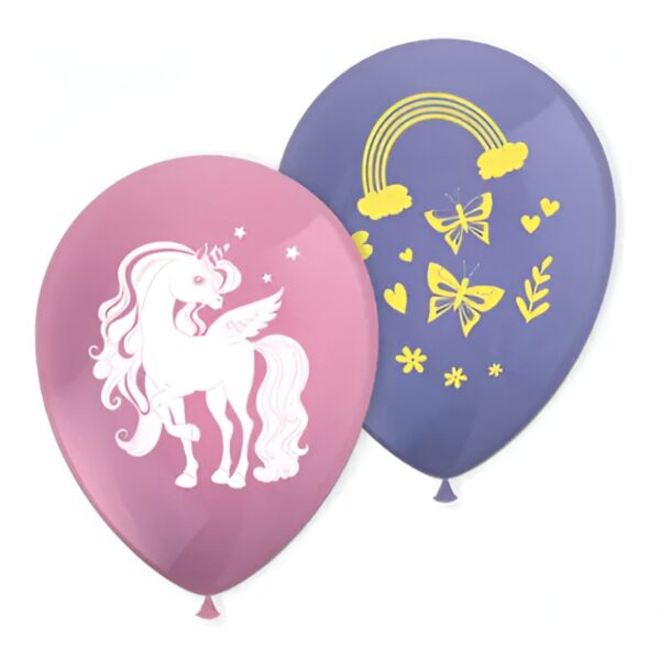 Λάτεξ μπαλόνια Μονόκερος με Πεταλούδες (8 τεμ)