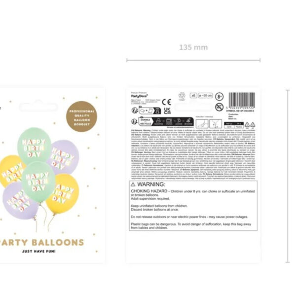 Σετ μπαλόνια παστέλ Happy Birthday (6 τεμ)
