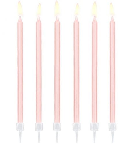 Ψηλά Κεράκια τούρτας Ροζ (12 τεμ)