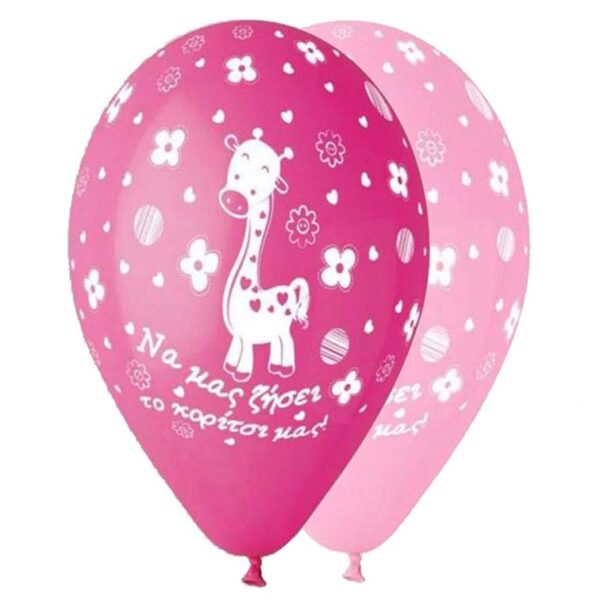 12″ Μπαλόνι καμηλοπάρδαλη να μας ζήσει το κορίτσι μας (25 τεμ.)