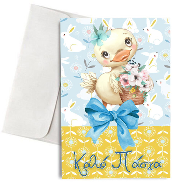 Πασχαλινή Κάρτα Παπάκι με λουλούδια