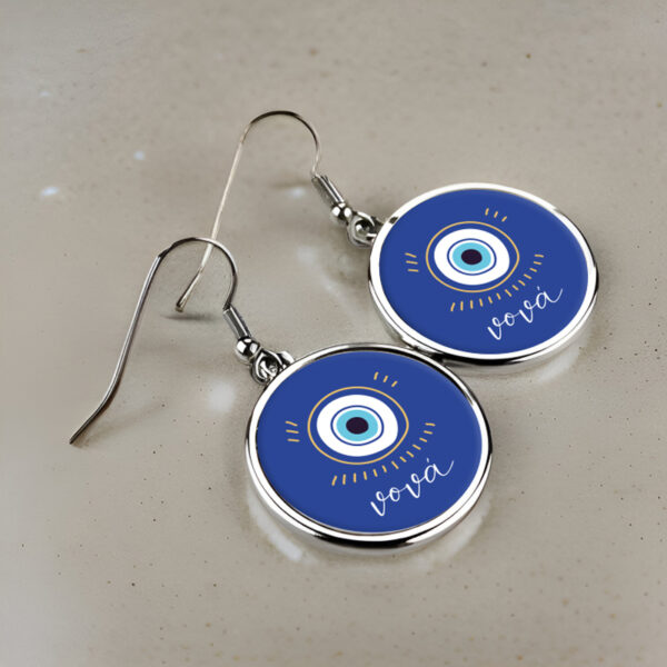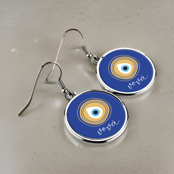 Μεταλλικά Σκουλαρίκια στρογγυλά για Νονά – Μπλε Ματάκι