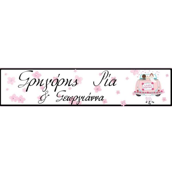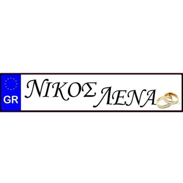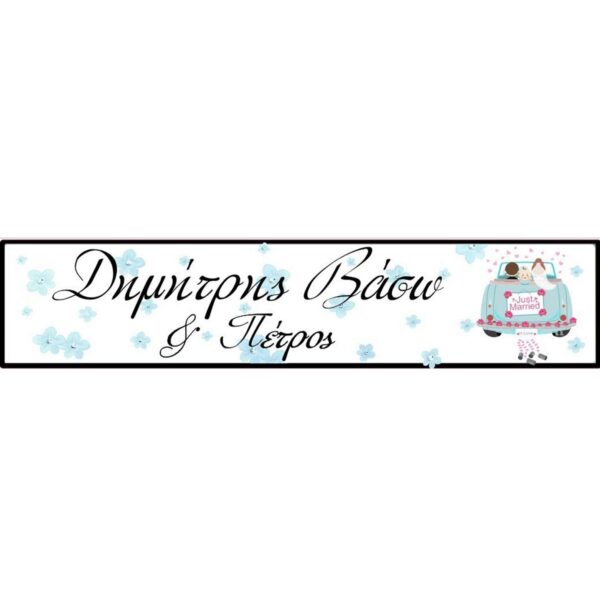 Πινακίδα αυτοκινήτου γάμου Ονόματα & βέρες (2 τεμ)