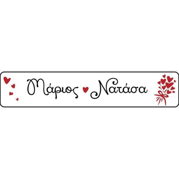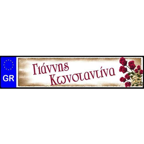 Πινακίδα αυτοκινήτου γάμου Ονόματα & τριαντάφυλλα (2 τεμ)