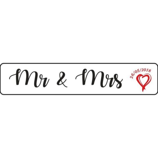 Πινακίδα αυτοκινήτου γάμου Mr & Mrs ημερομηνία (2 τεμ)