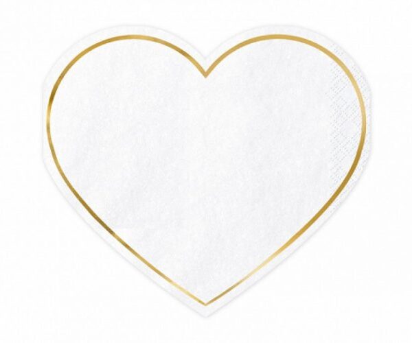 Χαρτοπετσέτες Καρδιά άσπρο με χρυσό (20 τεμ)