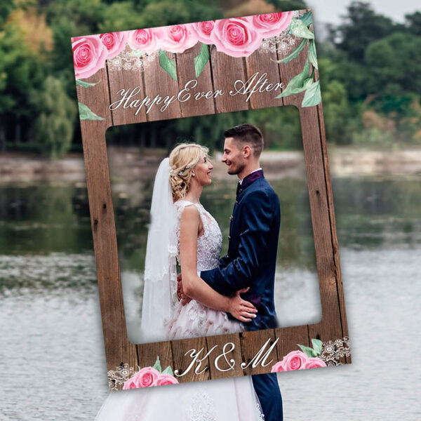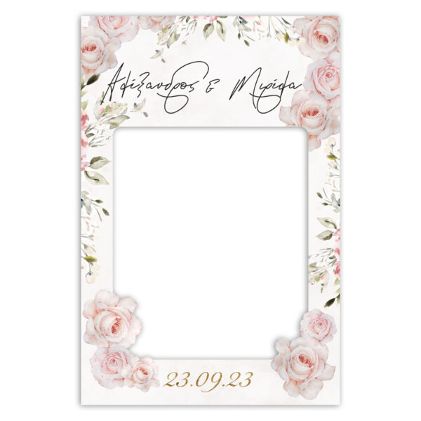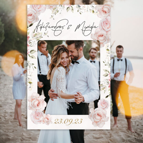 Κάδρο Photo Booth Γάμου Ροζ Τριαντάφυλλα