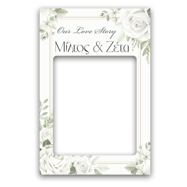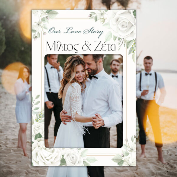 Κάδρο Photo Booth Γάμου – Λευκά Τριαντάφυλλα