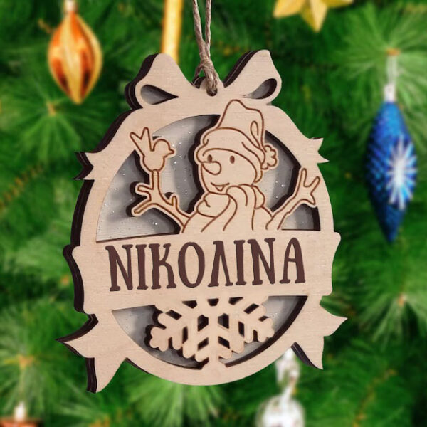 Ξύλινο Χριστουγεννιάτικο Στολίδι με Όνομα – Χιονάνθρωπος