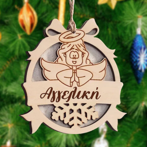 Ξύλινο Χριστουγεννιάτικο Στολίδι με Όνομα – Αγγελούδι