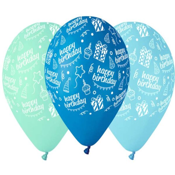 12″ Μπαλόνι Happy Bday μπλε αποχρώσεις (25 τεμ)