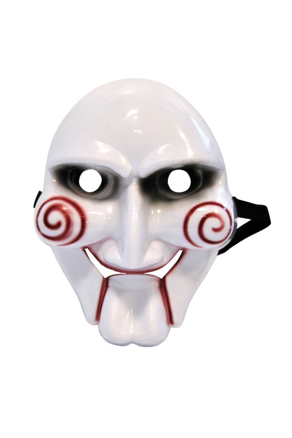 Τρομακτική μάσκα Jigsaw από την εμβληματική ταινία θρίλερ Saw, ιδανική για ανατριχιαστικές εμφανίσεις! Διαθέτει εύκολη εφαρμογή με χοντρό λάστιχο για άνεση και σταθερό κράτημα.